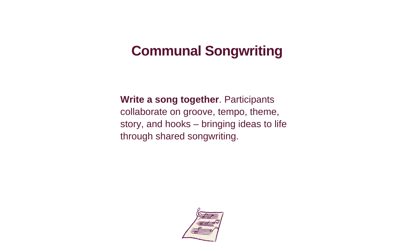 Are you an artist, songwriter, educator, or leader looking to reconnect with your creativity? I offer 1:1 coaching sessions designed to help you tap into the creative process in a supportive, safe environment.